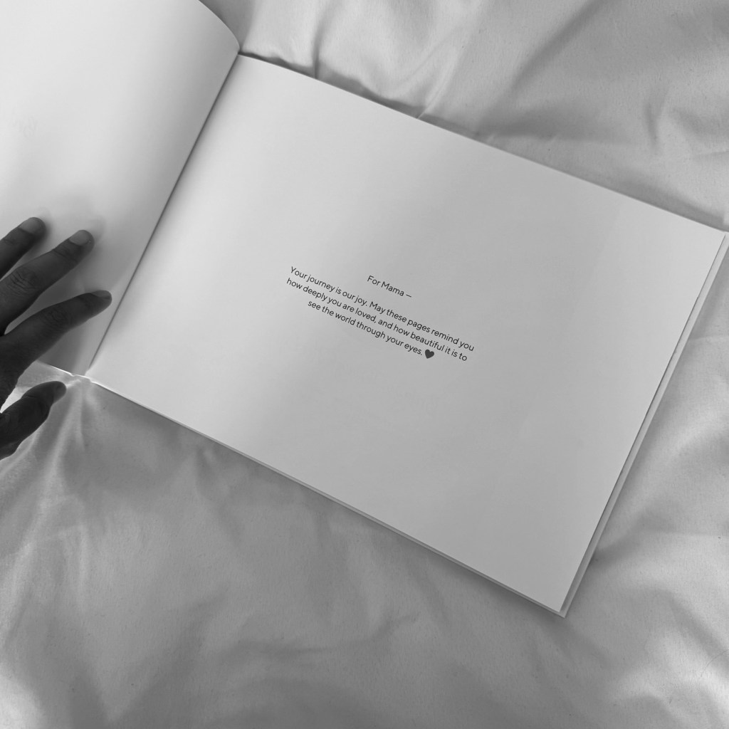“For Mama — Your journey is our joy. May these pages remind you how deeply you are loved, and how beautiful the world becomes when seen through your eyes.”