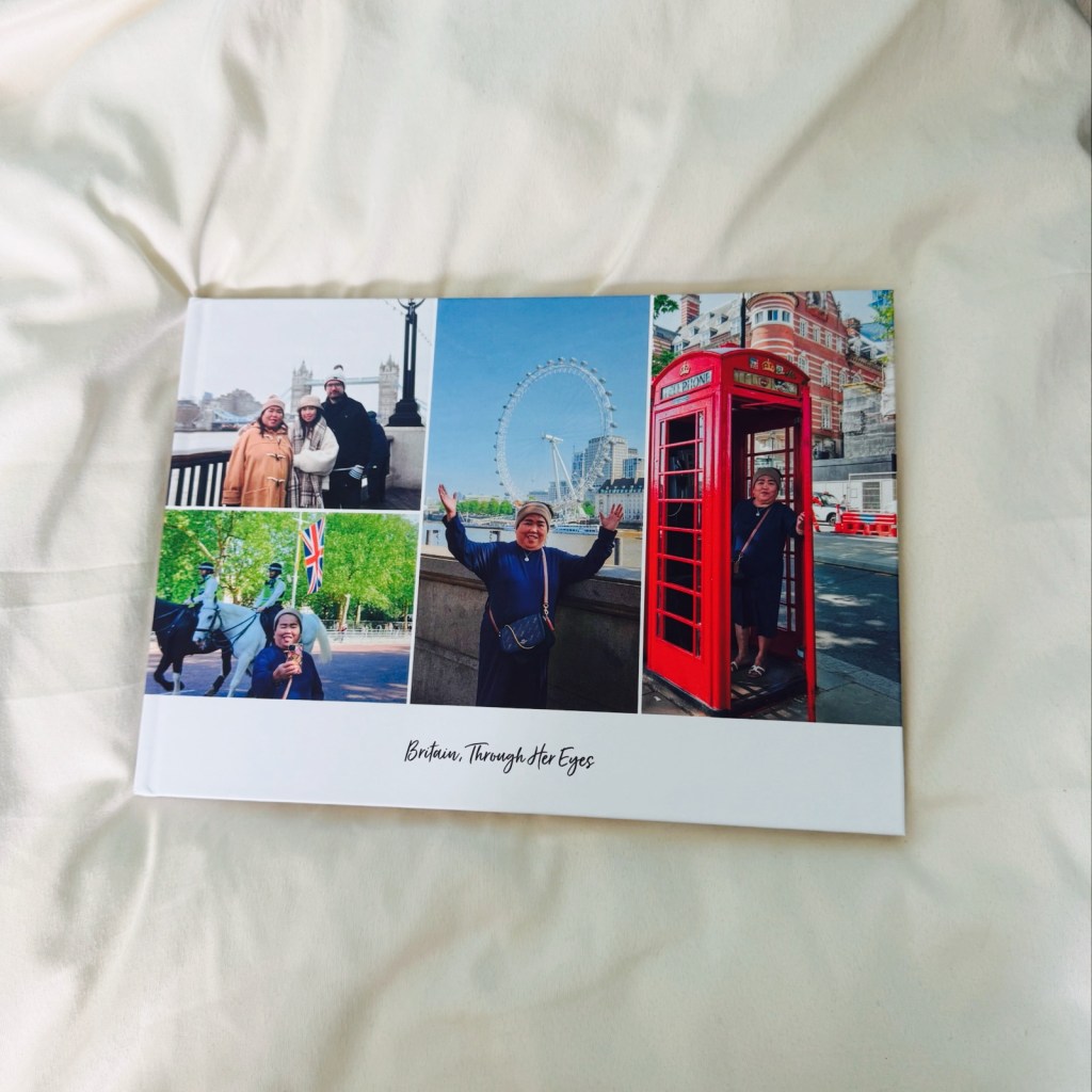 Because memories fade—but love shouldn’t—I made her a book. I called it “Britain, Through Her Eyes.” That’s how I want to remember this chapter. Not through my lens, but through hers. Through the quiet awe in her gaze as she took in the London skyline, wide-eyed at the London Eye, curious about every sculpture and plaque, smiling at strangers, laughing when we got lost and traced our way back with nothing but instinct and joy. She saw this country not as an immigrant, nor a tourist—but as a mother who once stood at an airport and said goodbye to her daughter, not knowing when they’d share space again. And now, here she was—walking the same streets she once only saw on postcards stuck to our fridge back home.