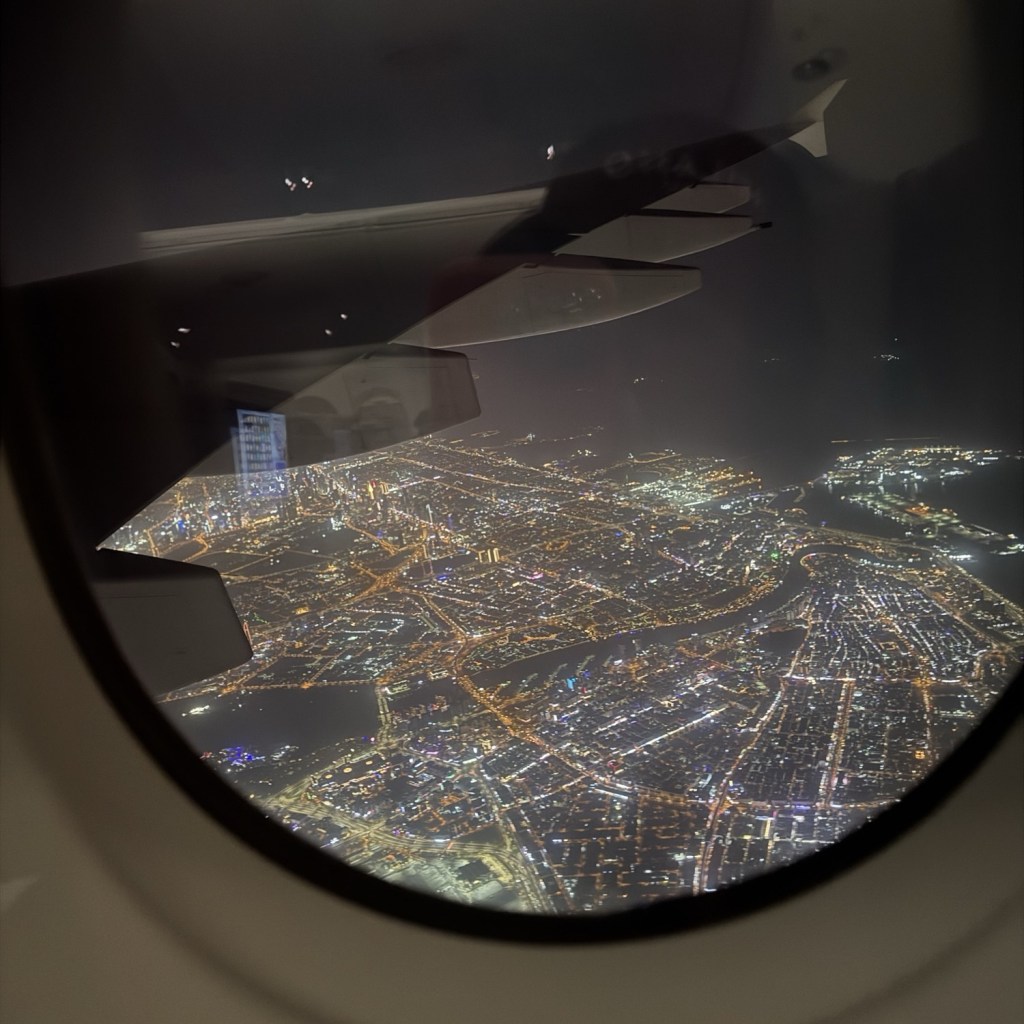 I watched the earth light up like fireflies below us as we flew over Dubai—a glowing city of gold threads and ambition stitched into the dark fabric of the desert. I should have been asleep. Instead, I found myself marveling at how we could be thousands of feet above the world and still carry its weight.
