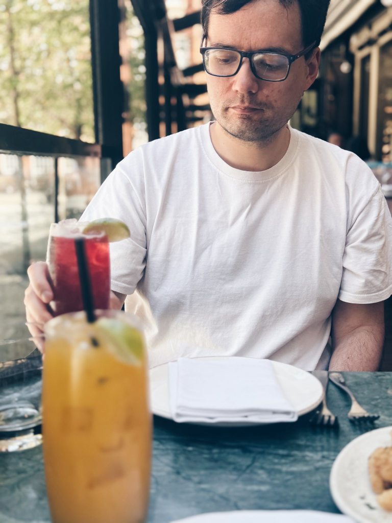 Then came Piccolino — our lunch spot and little escape. There’s something romantic about al fresco dining under the English sun. You sit, sip slowly, and let your senses catch up to the moment. I ordered a citrus mango drink — bright, cold, glowing like a bottled summer. I held it with both hands, not just for the taste but for the comfort.