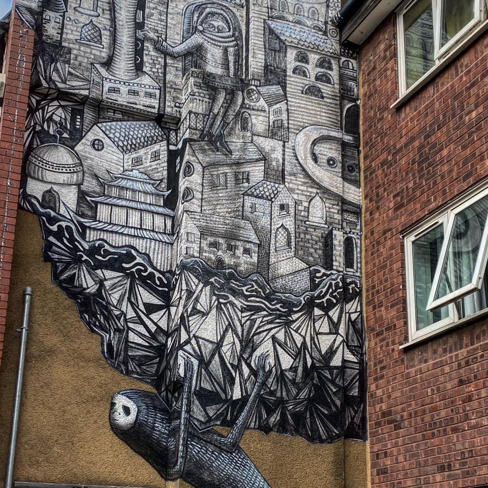 I stumbled upon murals like stories told in charcoal and whimsy—like someone had taken a dream and drawn it across bricks.