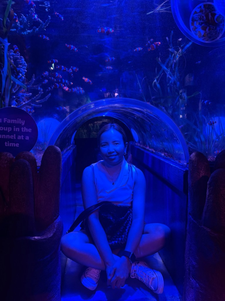 And then, perhaps the most intimate moment of the day: I sat beneath a curved glass tunnel, cross-legged in the deep blue, surrounded by fish that swam above and beside me like a living galaxy. For the first time in days—maybe weeks—I wasn’t thinking of work, or what needed doing, or what hadn’t yet been said. I was simply… there. In the hush of the water. In the soft hum of aquarium light. In the quiet company of lives who knew nothing of mine, and yet taught me everything.