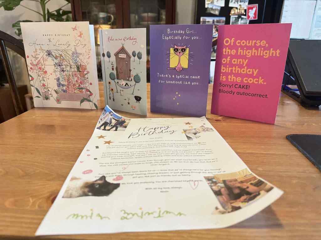 From the hilarious hot pink card that blamed autocorrect for a cheeky typo, to the more emotional printed letter with cat stickers and photos of us together—each one felt like a hug I didn’t know I needed. They weren’t just cards. They were reminders. That I am loved in different ways by different people. That even when I forget my worth, they haven’t. That despite the chaos of adulthood, someone took the time to write me a piece of their heart.