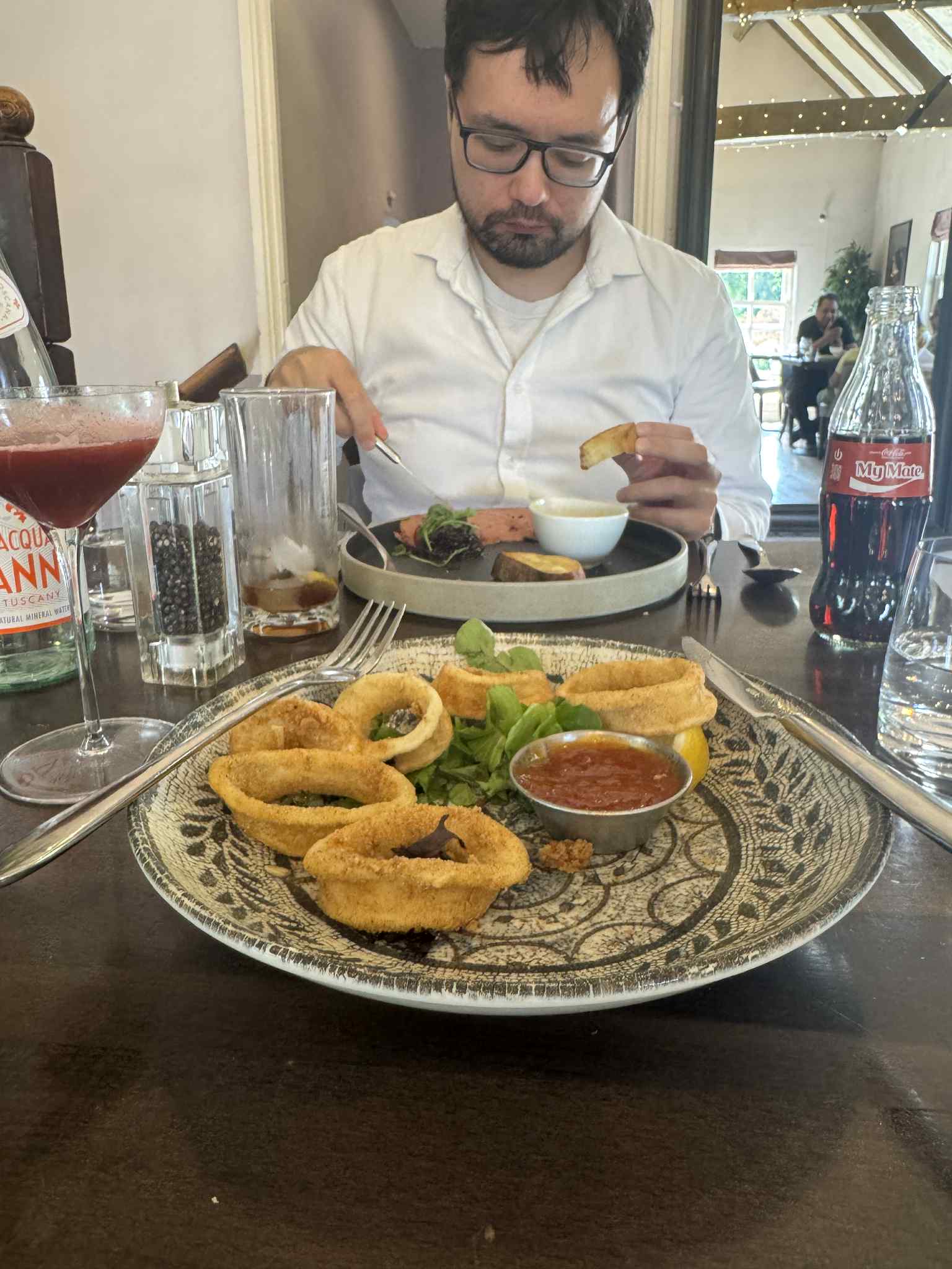 We began with the calamari fritti, lightly dusted and fried to golden perfection. Each ring had a satisfying crunch on the outside, with tender calamari that practically melted on the tongue. Served with a tangy tomato dip and a wedge of lemon, the dish balanced the richness with a bright, fresh zing. It was simple, but in that simplicity, it sang.