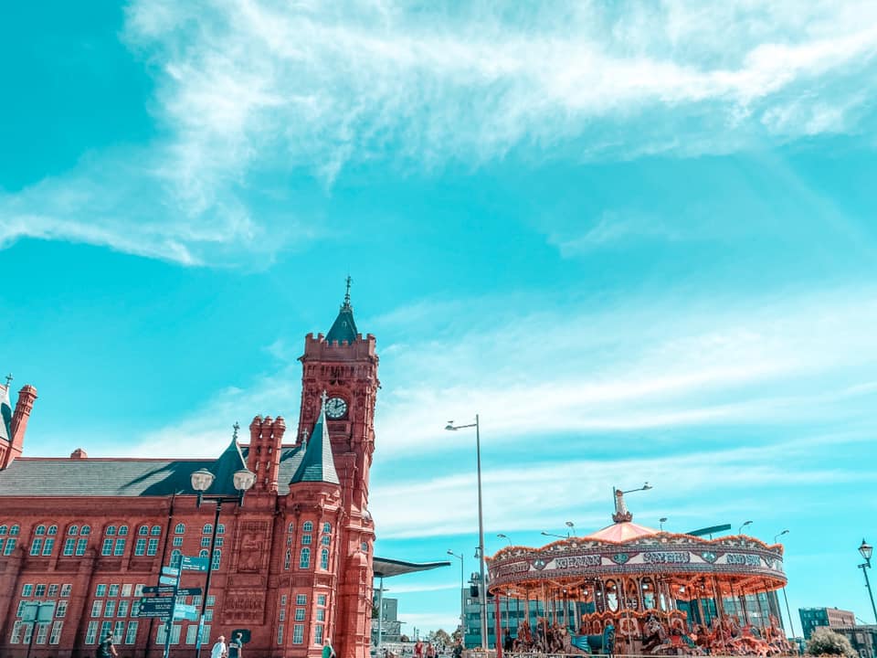 Cardiff greeted me with a rare, perfect blue sky. The kind of day that makes the city glow brighter, its mix of history and modern life laid out like a painting. My first stop was Cardiff Bay, where the Pierhead Building stood tall in its striking red brick against the skyline, and the Ferris wheel turned slowly nearby. Boats lined the harbor, and for a moment, the whole scene felt like a postcard—alive with color, but calm at the same time.