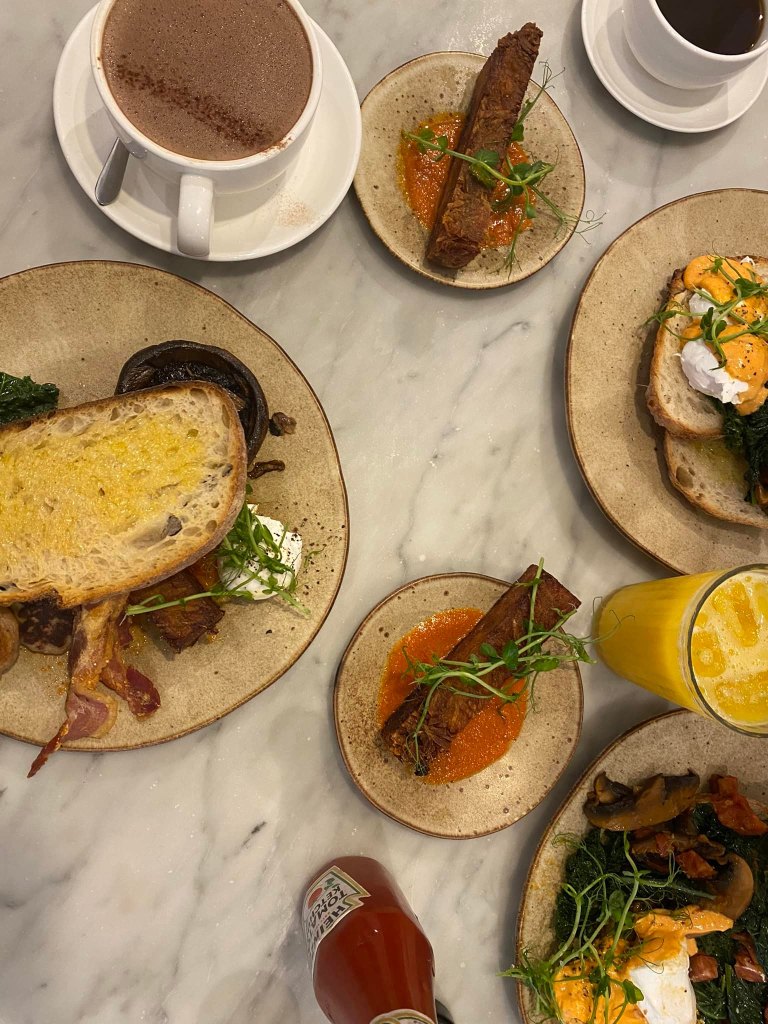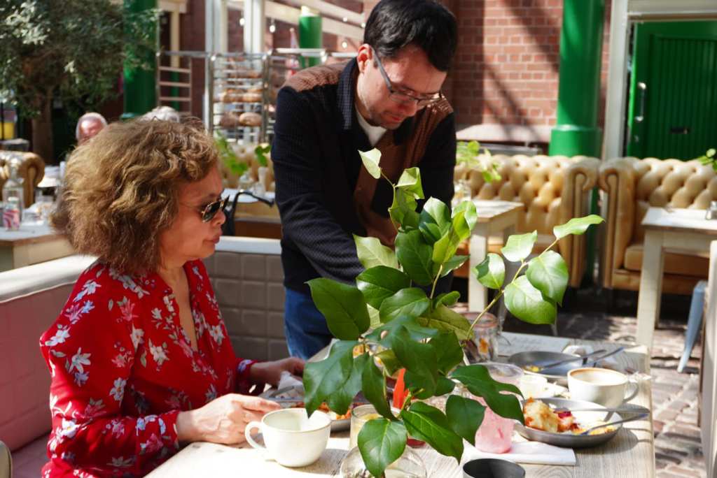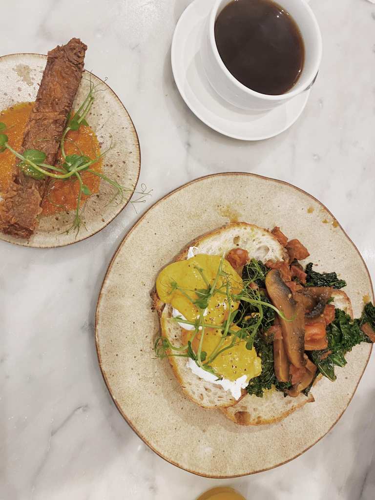 Sit inside and you’ll hear the low hum of conversation—friends meeting after work, a mother and child sharing hot chocolate, someone scribbling into a notebook while their coffee cools. Sit outside in the courtyard and you’ll find yourself beneath the open sky, where even the simplest croissant feels like a luxury when paired with crisp air and time to breathe.