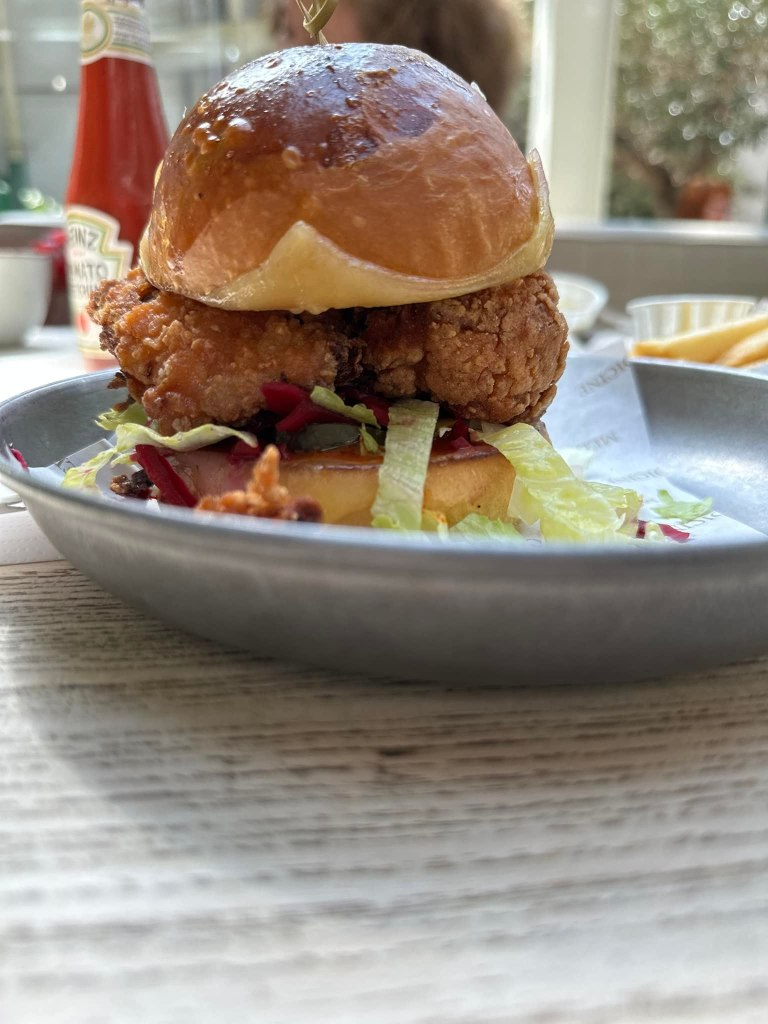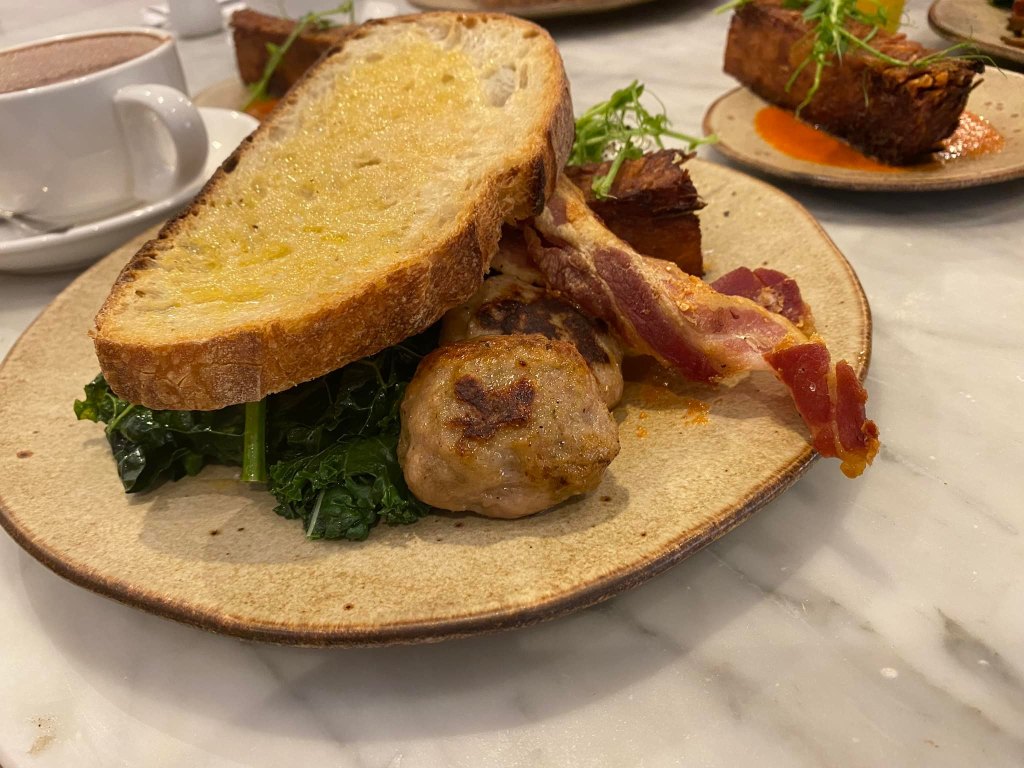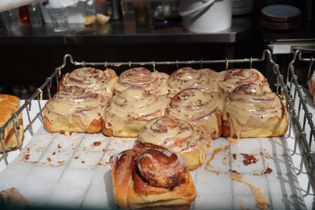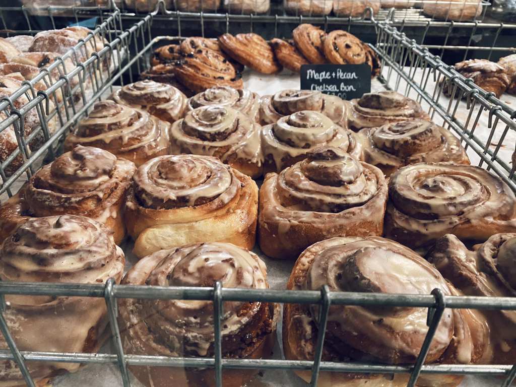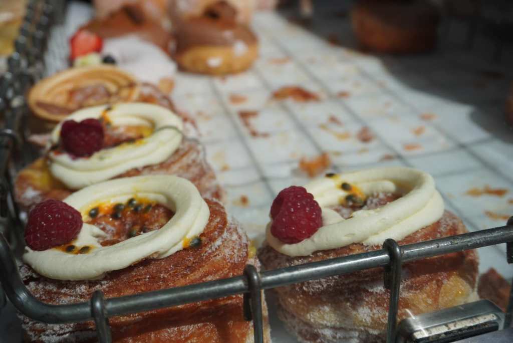 The space itself carries a kind of artistry. Exposed brick, wooden tables, light streaming through high windows—it feels both modern and familiar. At the counter, rows of sourdough loaves sit like sculptures, golden and imperfect in the best way. Pastries line up in delicate layers, flaky enough to scatter joy onto your fingertips. You sense, immediately, that these aren’t products of speed—they are the result of care.