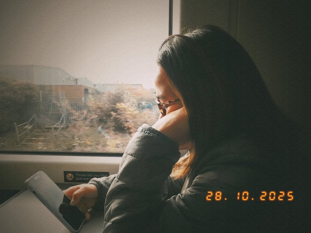Another snapshot I’ll hold close: the quiet hum of the train, my reflection blurred against the window as the world outside turned to a watercolor of greys and golds. I wore my favorite sweater, coffee in hand, letting the scenery unfold without hurry. It wasn’t loneliness that filled me that day — it was peace. The kind that comes when you stop chasing, and simply allow life to move through you.