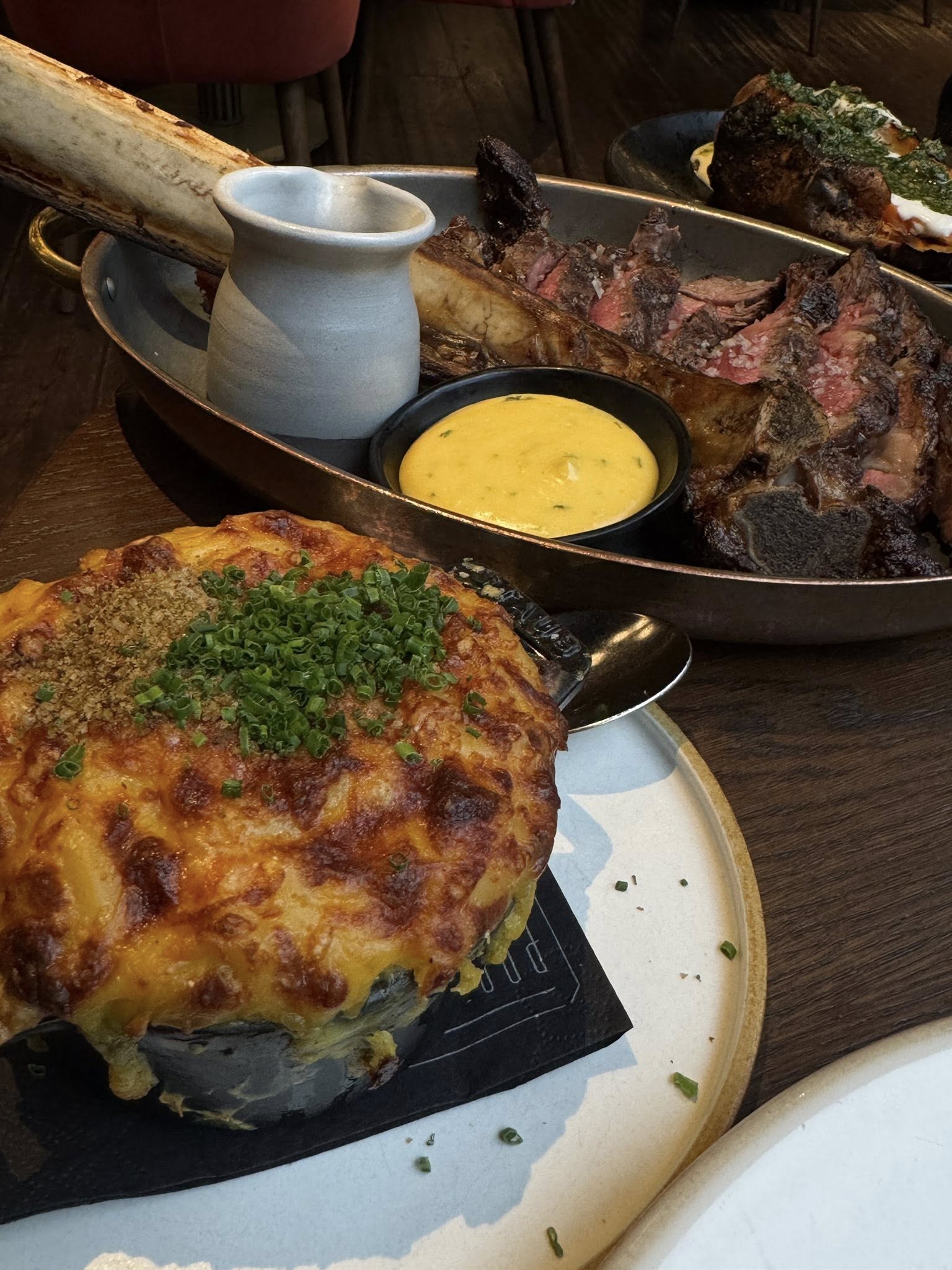 And then there was the food—thoughtful, bold, and deeply satisfying. Each dish felt intentional, as though it had been given time to become what it was meant to be. The steaks were exceptional: cooked with precision, richly flavoured, and served with accompaniments that elevated rather than distracted. You could taste the quality, not just in the meat itself, but in the balance—salt used sparingly, sauces layered rather than overpowering, textures playing quietly against one another. Even the sides held their own, generous without being excessive, familiar yet refined.